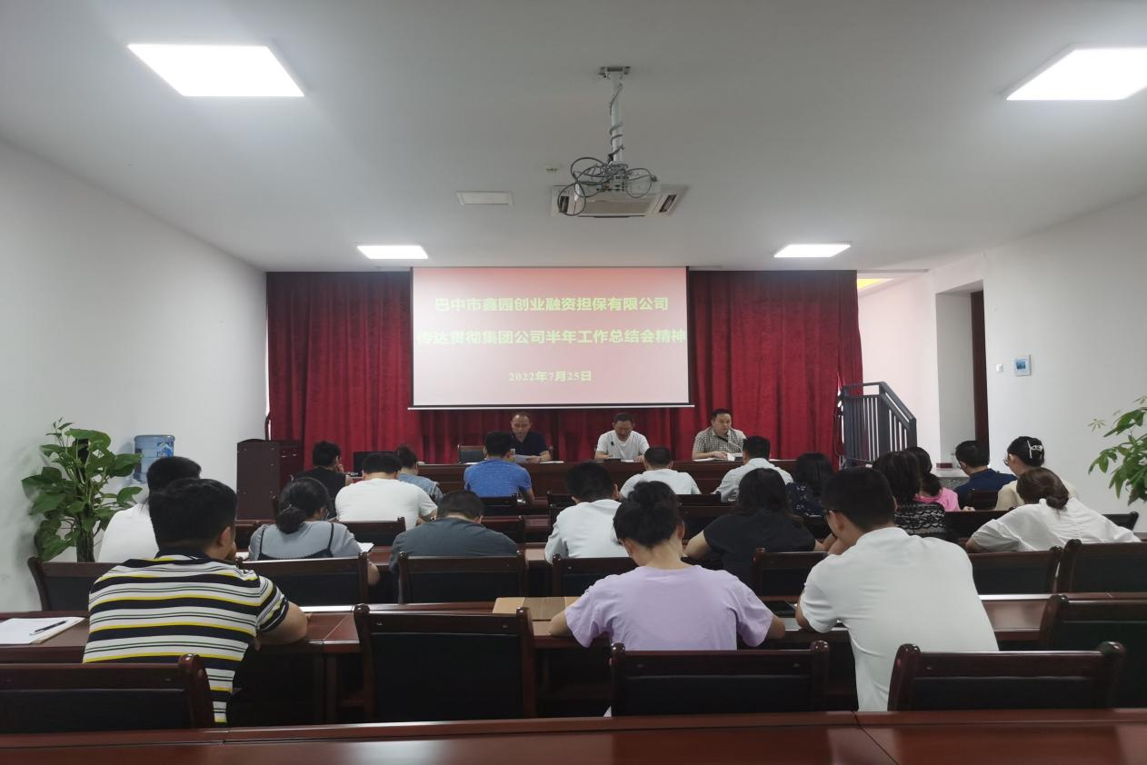 7月25日,市鑫园创业融资担保有限公司召开职工大会,传达了集团公司半年工作总结会精神,党支部书记、董事长、总经理余斌主持会议,全体职工参加会议。