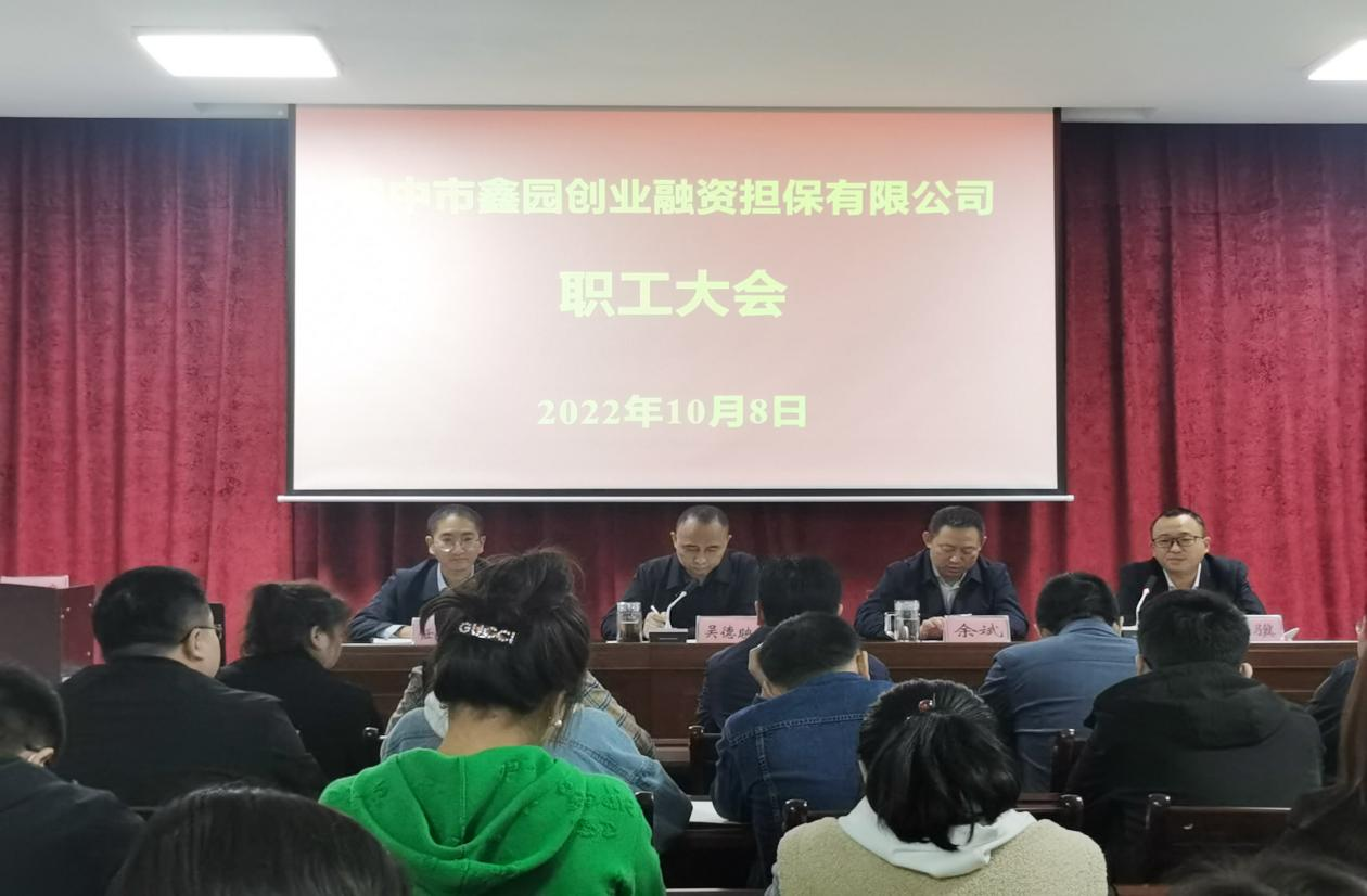 10月8日上午,市鑫园创业融资担保有限公司召开职工大会,会议总结分析1-9月业务开展情况,安排部署四季度工作。董事长吴德映主持会议,公司全体职工参加会议。