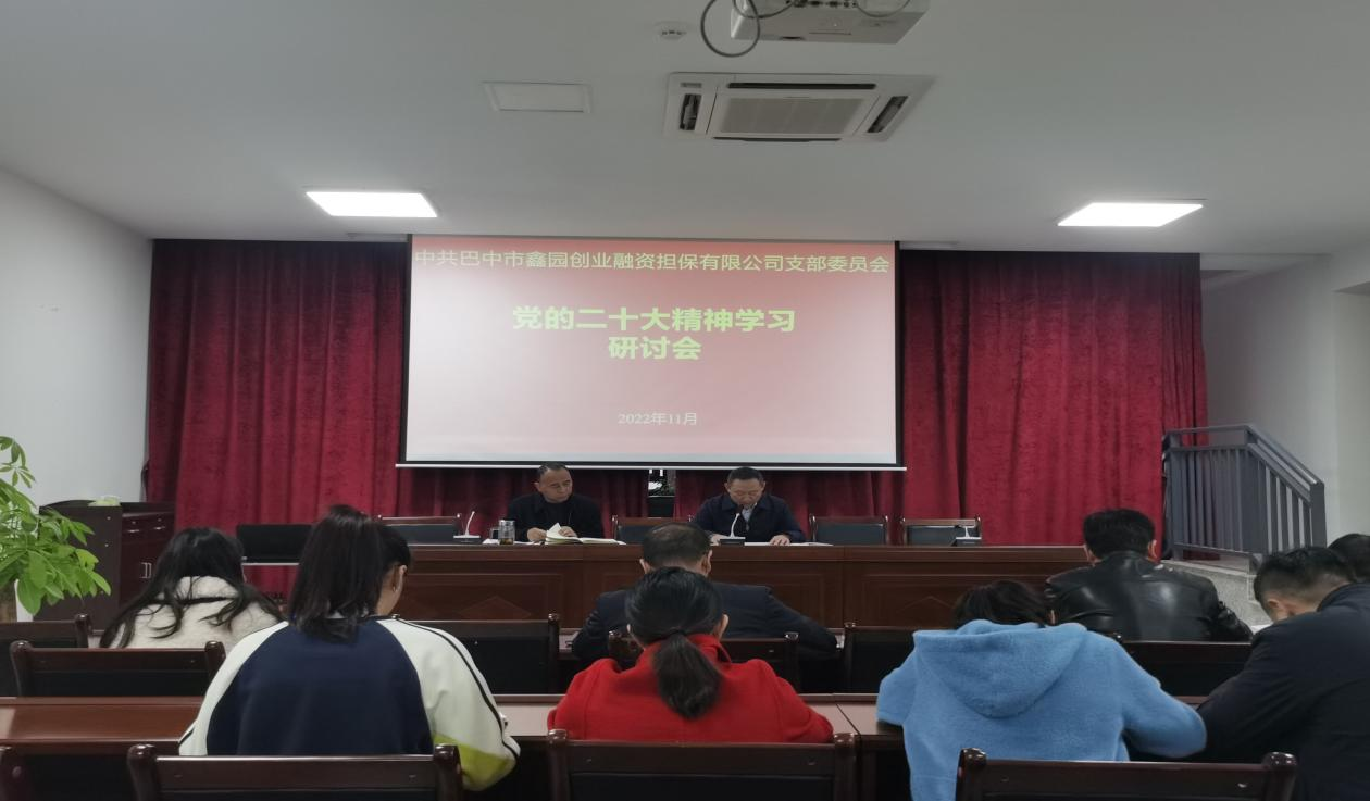 11月18日,市鑫园创业融资担保有限公司党支部召开党员大会,专题学习了党的二十大精神,并深入开展交流研讨。会议由党支部书记余斌主持,公司党员、入党积极份子参加会议。