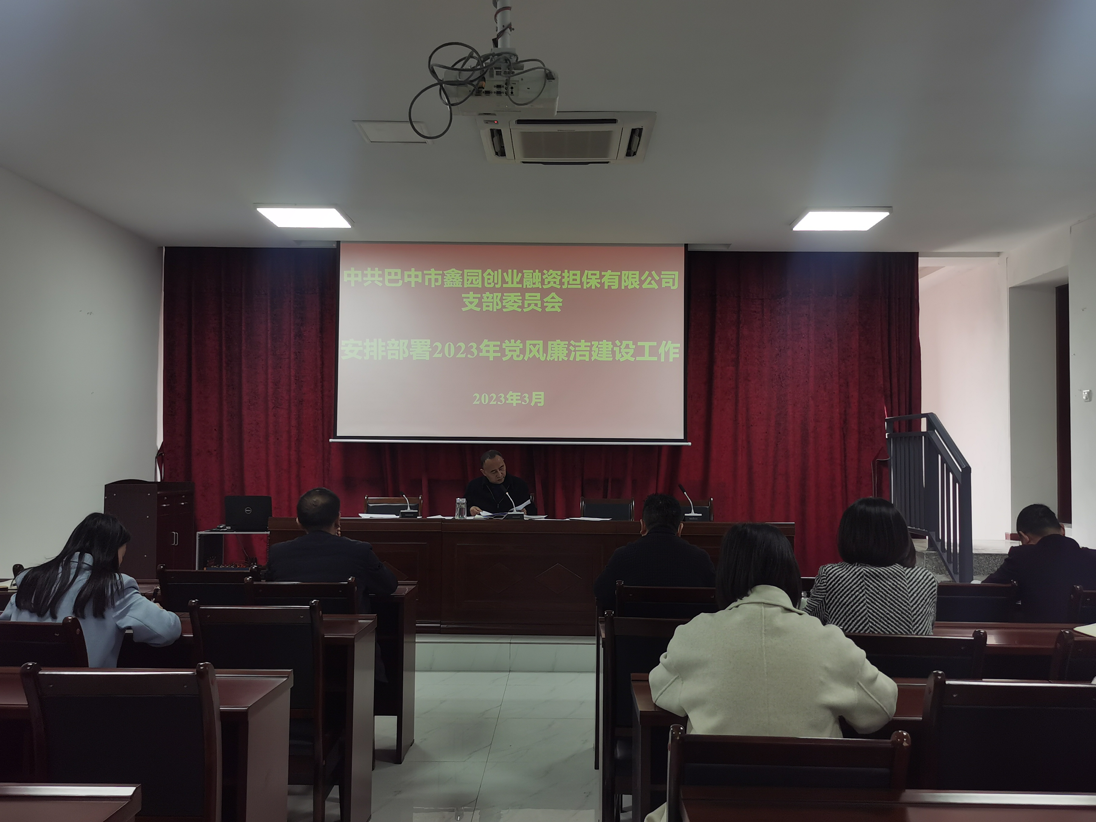 为进一步压实全面从严治党主体责任,扎实做好全面从严治党和党风廉洁建设工作,3月28日,市鑫园创业融资担保公司党支部组织召开党员大会,公司党支部书记、董事长吴德映主持会议,公司全体党员及入党积极分子参加会议。
